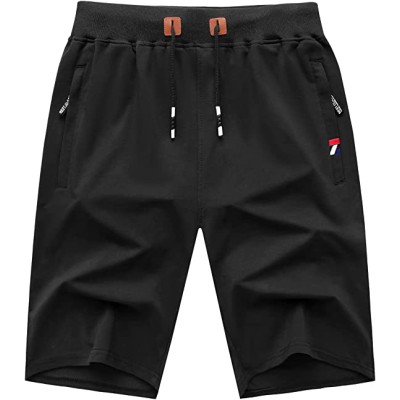 Mens Shorts Casual Comfortable Workout Shorts Drawstring Zipper Pockets Elastic Waist