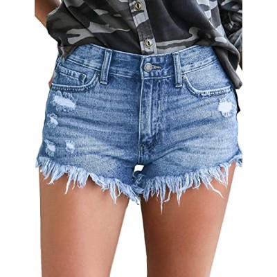 Women's Casual Mid Rise Denim Shorts Stretch Ripped Raw Hem Jean Shorts
