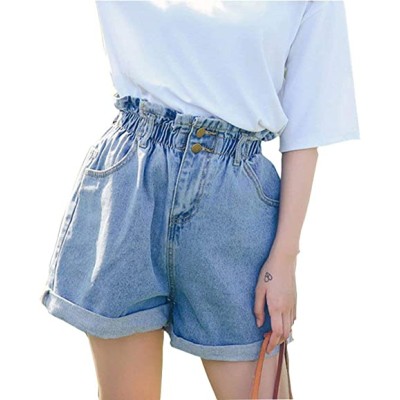 Women's High Waisted Denim Shorts Rolled Blue Jean Shorts
