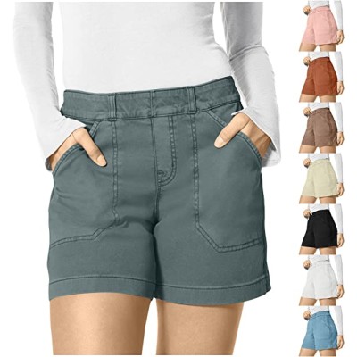 Women's Casual Shorts Elastic Waist Soft Comfy Lightweight Cotton Cargo Shorts