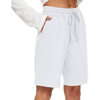 Knee Length Women Bermuda Shorts Elastic Waist Drawstring Athletic Long Shorts Casual Summer Yoga Shorts