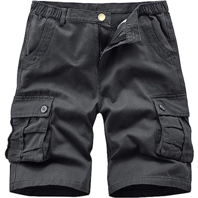 Men's 3/4 Cargo Shorts Elastic Below Knee Capri Long Shorts Casual Loose Fit with 7 Pockets